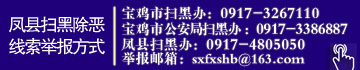 凤县公安局扫黑办:举报电话:0917—4762232
