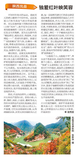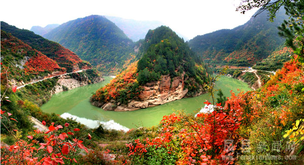 不知何年地壳的运动,造就突兀的群山横贯于中国中部,这就是被人们称为南北气候分界线的秦岭。而位居在秦岭脚下的陕西凤县(古称“凤州”),我不仅为它如日月星辰般璀璨的三国文化、西游文化、红色文化所陶醉,更为文友歌吟的“枫绽群峦,霞染灵官。绚层林,兴意绵延……”的词句所感染,独独爱它“飞焰欲横天”气势,仿佛有一棵红枫,带着太阳的印痕,红蓬蓬地生长在我的身体里,让我感到生命在充血,脉管在凸起、轰鸣。
