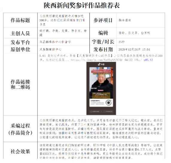 凤县融媒体中心报送2025年度陕西新闻奖作品公示
